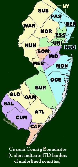 | Hunterdon | 11Mar1714 | Burlington Co | Gov Robert Hunter |